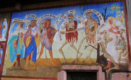 La fresque de la Danse macabre, sur le mur nord de l’église de Kientzheim.
