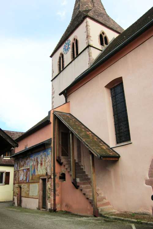 Le mur nord de l’église est orné d’une fresque d’une « Danse macabre », restaurée en 1977.