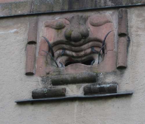 La canonnière dite du Lalli, sure la porte basse : cette figure grimaçante comporte même une langue articulée. Le lalli désigne le bavard à la langue fourchue.